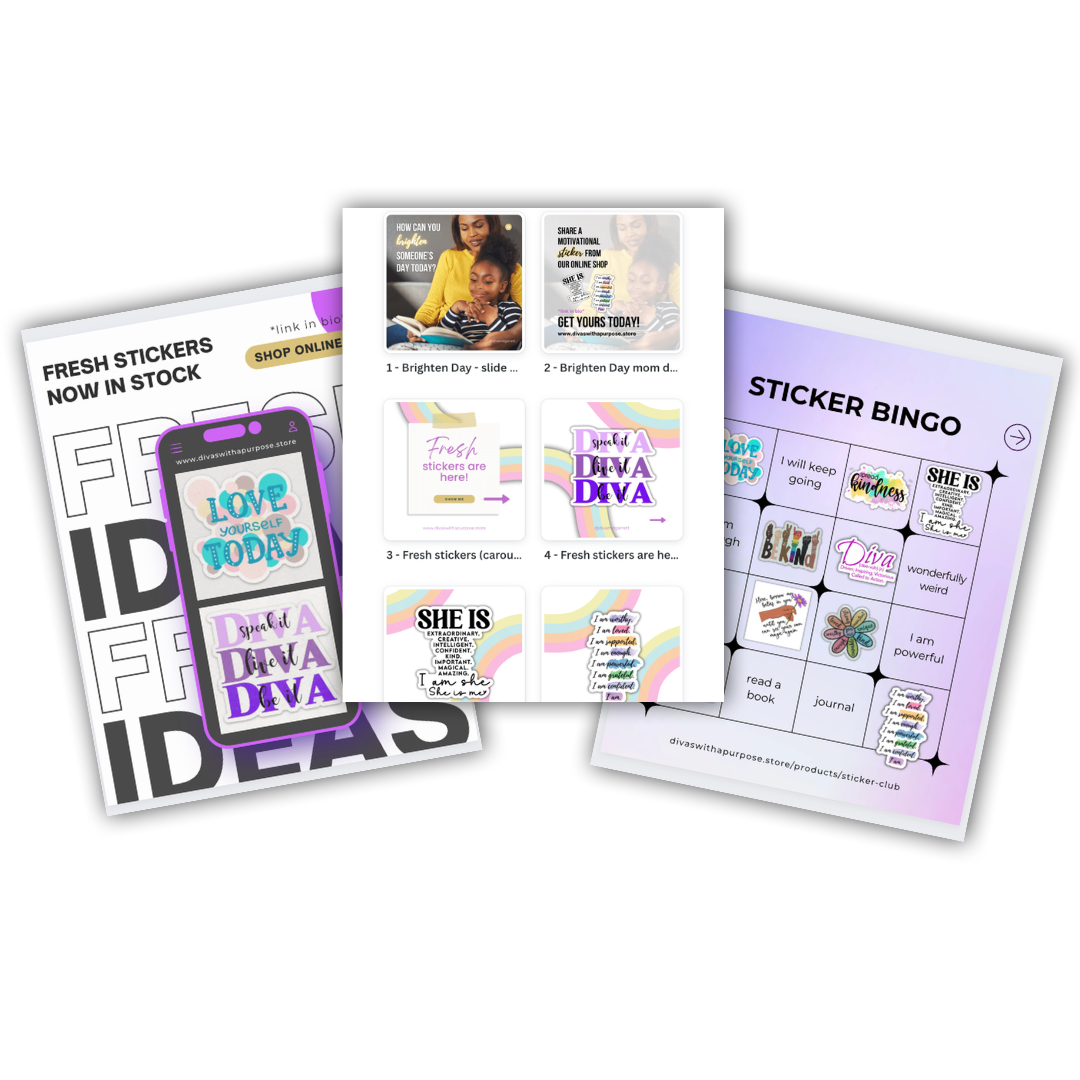 The design brief was to focus on promoting her sticker shop, so I created carousels, Reels videos, testimonials, quotes templates... all in a fun vibe that matched her brand, including mix-and-match end-slides with different CTAs. This collection is easy to repurpose too - she can change from square to portrait IG size, turn into Reels, sub in new stickers or promotions... all perfect for a busy entrepreneur to save time and have a gorgeous, branded Instagram feed that promotes her offers AND builds that know, like and trust factor with valuable content on Instagram.
